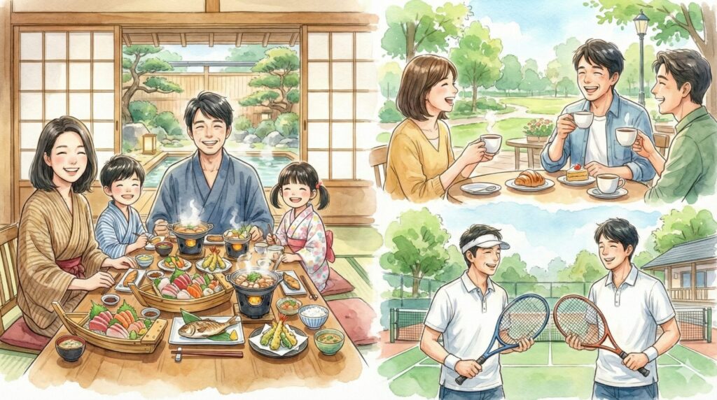 配当金が貯まったから、次の家族旅行はちょっとグレードアップして良い宿に泊まろうか!