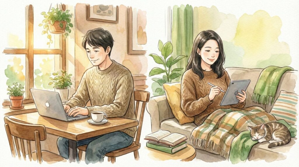 フルタイム勤務で残業に追われ、疲れて帰ってコンビニ弁当で済ませる……そんな心身をすり減らす生活とは、雲泥の差です。