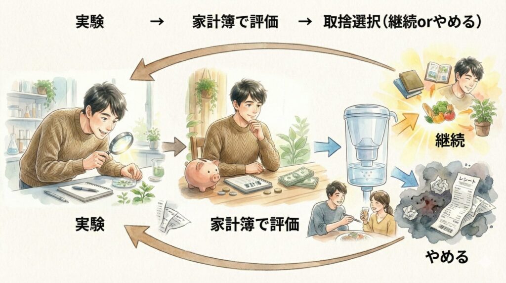 実際に身銭を切って体験し、家計簿を見返して、「これは残す」「これは捨てる」と仕分けしていく。この泥臭い作業こそが、理想のライフスタイルを作る最短ルートです。